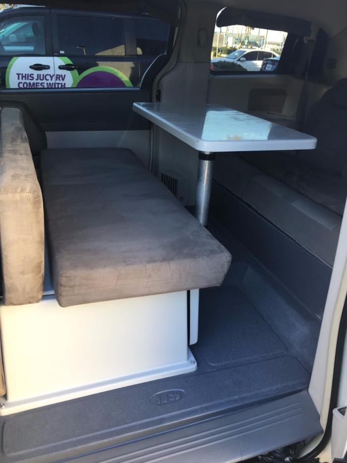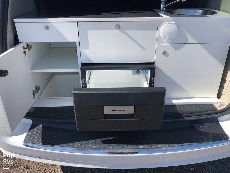 객실에는 식탁이나 책상 공간에 쉽게 설치할 수 있는 테이블 확장 기능이 있습니다. 차량 후면에는 식기, 컵, 접시, 스토브 등을 위한 캐비넷의 수납 공간이 완비된 좋은 크기의 주방과 31쿼트(30l) 냉장고, 수도 및 배수 기능이 있는 싱크, 5.2갤런(20l) 물 탱크, 6.6갤런(25l) 폐수 탱크가 있습니다. 지붕 장착형 태양광 패널로 냉장고 전원을 공급합니다.
