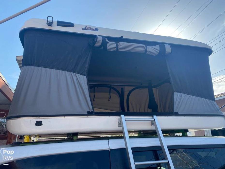 루프탑 텐트 펜트하우스는 성인 2명이 잘 수 있어 내부 2명의 침대와 함께 총 4인용 RV 밴이 됩니다. 하드쉘로 된 루프 텐트는 James Baroud 제품으로 크랭크업하면 쉽게 열리고 번거롭지 않게 닫힙니다.