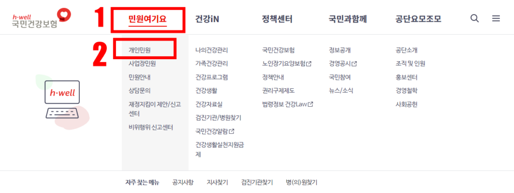 1. 건강보험공단 홈페이지 바로가기