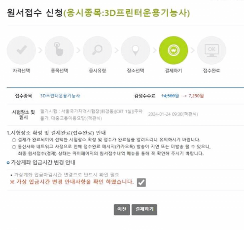 3. 응시료 50% 할인받을 시 주의사항